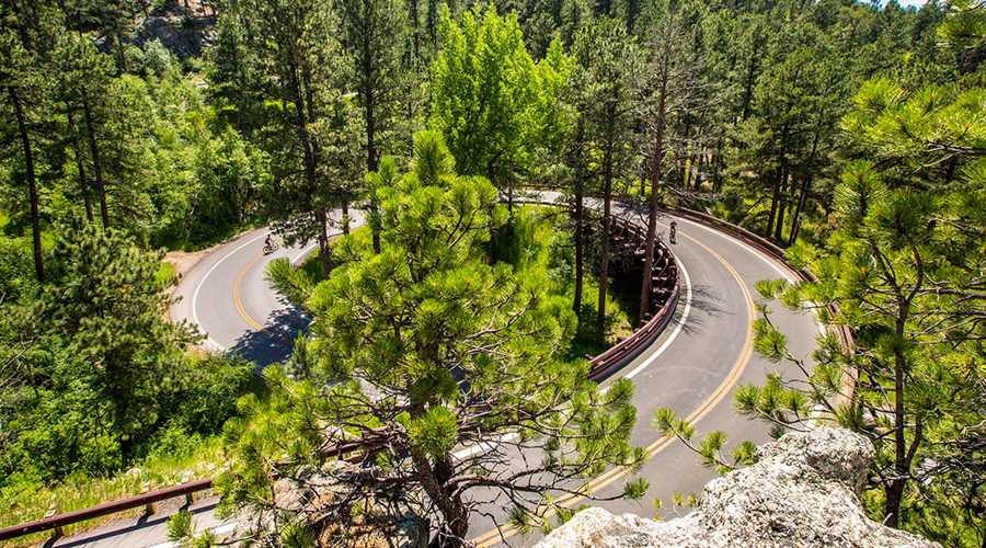 Het eerste deel was prachtig. Groene heuvels, af en toe een ranch met een kudde koeien en het uitzicht op de steeds iets kleiner wordende Devils Tower. Het gravel was niet overal even goed, maar steeds redelijk te befietsen. Het bordje dat we na een uur op een splitsing tegenkwamen waarop stond dat Sundance nog 21 mijl verderop lag was een kleine tegenvaller, blijkbaar was de FedExbezorger niet zo goed in afstanden schatten, maar goed, er was nog weinig aan de hand. Vervolgens begon het klimmen. En werd de weg slechter en slechter. En kwamen we erachter dat we de laatste ranch ongemerkt voorbij waren gefietst, terwijl het waterpeil in onze bidons steeds lager kwam te liggen. De klim werd steiler en de weg hobbeliger en net toen het laagje water verontrustend begon te worden, kwam er een echtpaar in een buggy langsgereden die nog wel twee flesjes water over hadden. En die ons konden vertellen dat het nog twee mijl klimmen was, waarna we via een afdaling van ongeveer 8 mijl Sundance in zouden glijden, of eigenlijk meer hobbelen. Met hernieuwde energie hervatten we onze weg. Om er wederom achter te komen dat afstanden inschatten een kunst apart is. Na nog drie kwartier klimmen kwamen we aan bij een kruispunt, zonder bordjes, en dus besloten we afgaand op de zon de weg rechtdoor te volgen. Anders had het echtpaar daar vast wat over gezegd. En inderdaad, we daalden, 5 mijlen lang. Bij de eerste splitsing voelden we enige nattigheid, maar we besloten de weg te volgen die het meest naar het zuiden ging. Bij de volgende kruising waren we officieel verdwaald. Althans, het sterke vermoeden rees dat we een uur eerder rechts hadden gemoeten. Teruggaan was inmiddels geen optie meer. Het was half zes, ons water was alweer bijna op, en als je niet weet waar je naartoe gaat is het moeilijk energie te vinden. De weg boog naar het oosten en wij moesten naar het zuiden. Maar de weg die naar het zuiden leek te gaan was meer een soort wandelpad dat steil omhoog ging. Toch maar even ingaan en daar lag een omgevallen bord. Sundance 12 mijl en Warren Peak 3 mijl. Die kant op. Nog drie mijl tot Warren Peak. Vijf kilometer tot een top. Bas was inmiddels afgestapt om te lopen. Vijf kilometer bergop. Dat zou nog wel een uur duren. We stopten er nog een energiereep in - wat een nog drogere mond tot gevolg had - en gingen maar door. Het leek een beetje op wandelen door de Alpen, alleen dan met een volledig bepakte fiets aan de hand. En toen, bijna een uur later, op Warren Peak, kwam eindelijk de verlossing. Een geasfalteerde weg. Die ons via een lange en heerlijke afdaling Sundance in bracht.